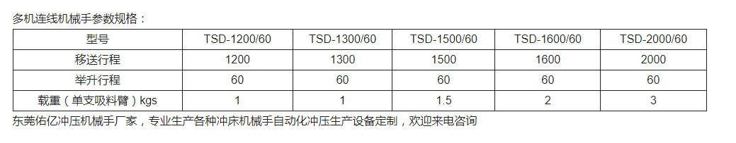 以上就是關(guān)于多機(jī)連桿式機(jī)械手使用要求以及參數(shù)講解,使用多機(jī)連桿式機(jī)械手能夠幫助企業(yè)提高生產(chǎn)效率,降低生產(chǎn)成本,與此同時(shí)還能降低沖壓安全事故的發(fā)生。